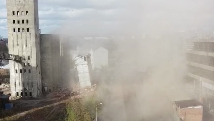 Плановый подрыв произошел около 14:00. Раздался один взрыв, на территории элеватора обрушилась часть шестиэтажного здания.