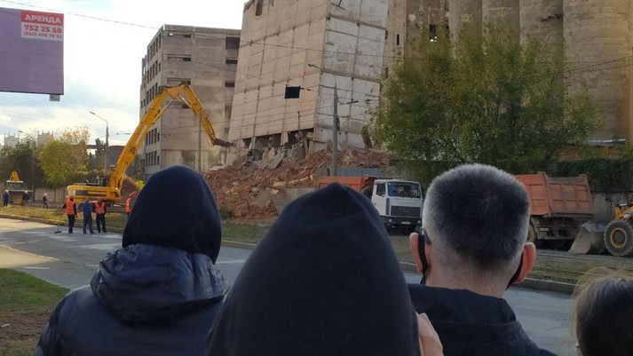 В районе Южного вокзала в Харькове в воскресенье 18 октября, демонтировали часть элеватора. Посмотреть на взрыв собрались несколько сотен человек.