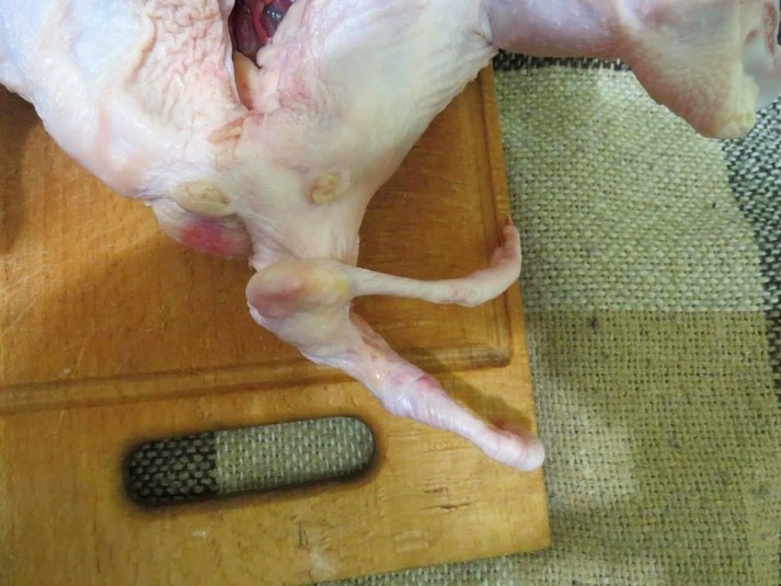 «Как можно было такого мутанта выбросить в продажу? На выходных купили курицу с двумя лишними лапами, которые каким-то образом выросли из «второго хвоста» на Салтовском мясокомбинате! Страшно такое и есть! Интересно, сотрудников, по ходу, ничего не смутило, что же у них там еще вырастает?!» - написали «счастливые обладатели» курицы.