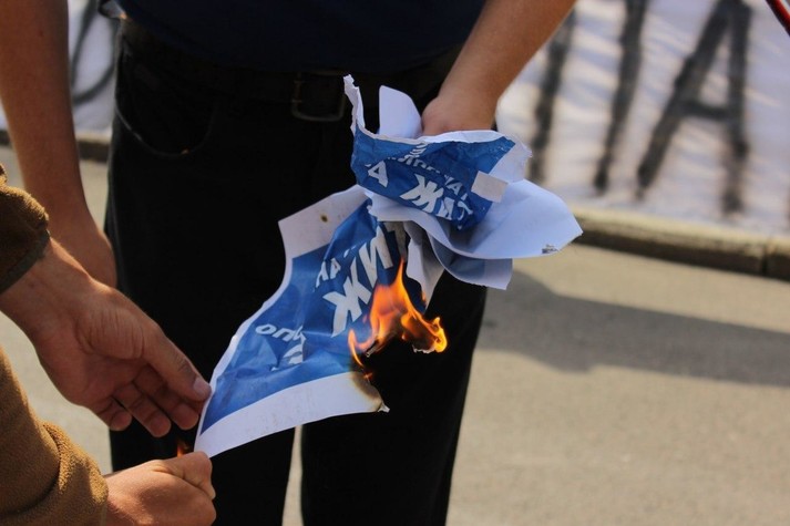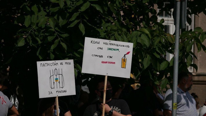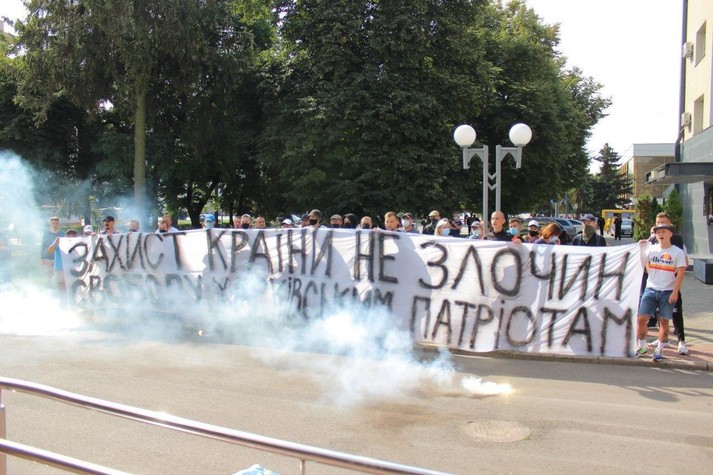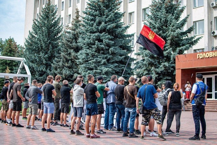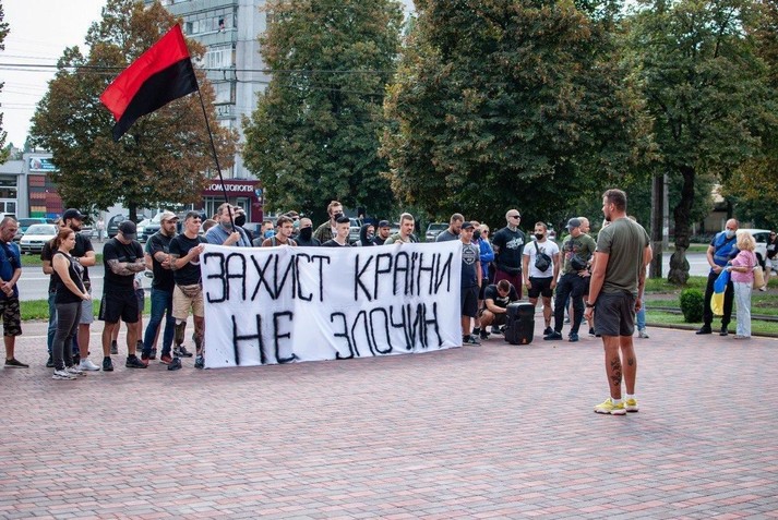 Митингующие возмущены, что правоохранители не обращают внимание на организацию Ильи Кивы, называя ее сборищем «ватных титушек и бывших беркутов».
