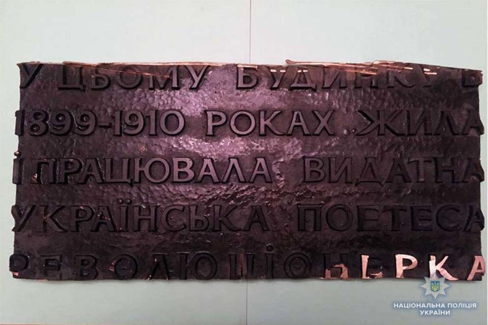 В Киеве правоохранители задержали подозреваемых в похищении мемориальной доски из музея Леси Украинки.