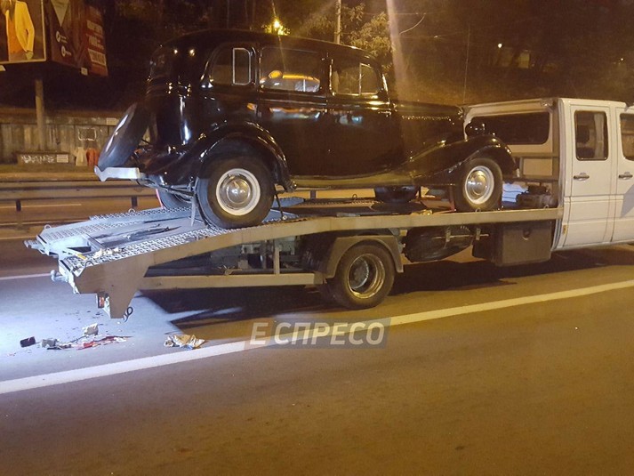 В Киеве пьяный водитель протаранил эвакуатор, который перевозил раритетное авто.