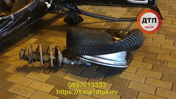В Киеве с моста на тротуар упал автомобиль (видео)