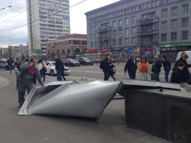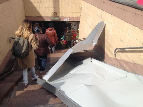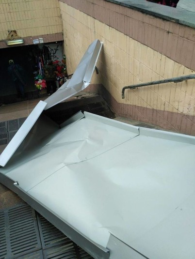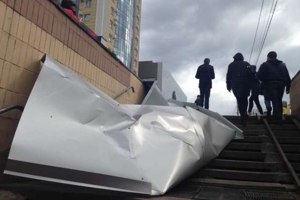 В четверг, 19 апреля, в Киеве с нового и недавно открытого торгово-развлекательного центра SmartPlaza на проспекте Победы, 26 возле Киевского политехнического института ветром сорвало металлический лист перекрытия.