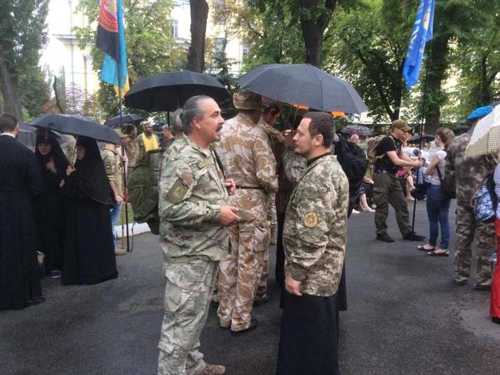 Многие верующие пришли на богослужение в национальной украинской одежде. Также были замечены капелланы и участники АТО в камуфляжной форме.