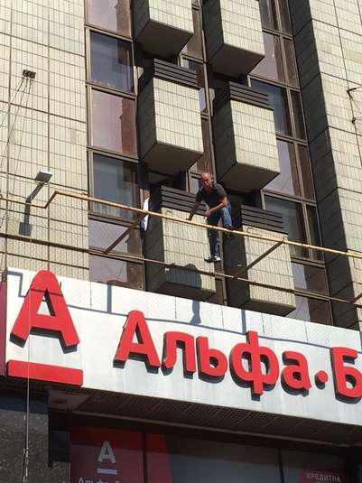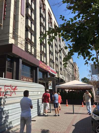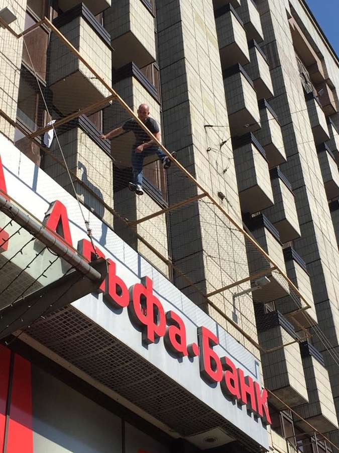 В центре Киева мужчина грозит выпрыгнуть с третьего этажа гостиницы «Крещатик».