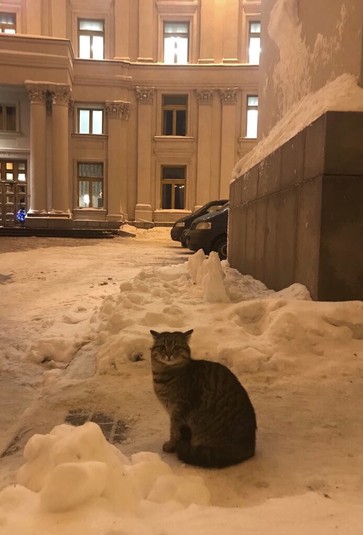 В МИД рассказали, что кота кормят и позволяют ему выходить на улицу, но мышей он пока не приносил.