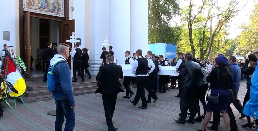 Церемония прощания прошла в Спасо-Преображенском кафедральном соборе. Проводить в последний путь девочек пришли несколько сотен одесситов - родные, близкие, участники танцевального коллектива «Адель», чиновники мэрии.