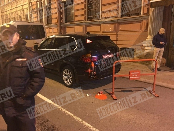 В Петербурге неизвестные из салона авто кинули стакан с краской в здание генерального консульства США.