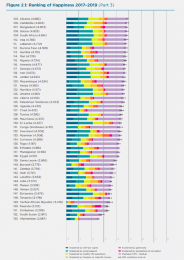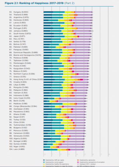 Доклад World Happiness Report был впервые выпущен в 2012 году при поддержке ООН. В нем оцениваются 156 стран и учитываются следующие показатели: ВВП на душу населения, социальная поддержка, ожидаемая продолжительность жизни, восприятия коррупции и др.