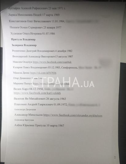 Как утверждает источник «Страны» в СБУ, данные списки Борис Герман (который подозревается в организации убийства журналиста Аркадия Бабченко) якобы передал своему «куратору Дмитрию» в контрразведке еще 21 мая 2018 года.