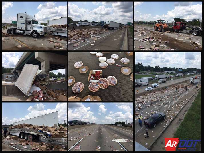 В американском штате Арканзас в результате ДТП по шоссе рассыпались коробки с замороженными пиццами.