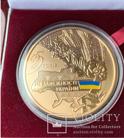 В Украине на аукционе продают монету из золота номиналом 250 гривен, посвящена 25 годам Независимости. Начальная цена лота - 215 тысяч гривен ($7972.20). Лот представлен на сайте Violity, пишет Апостроф.