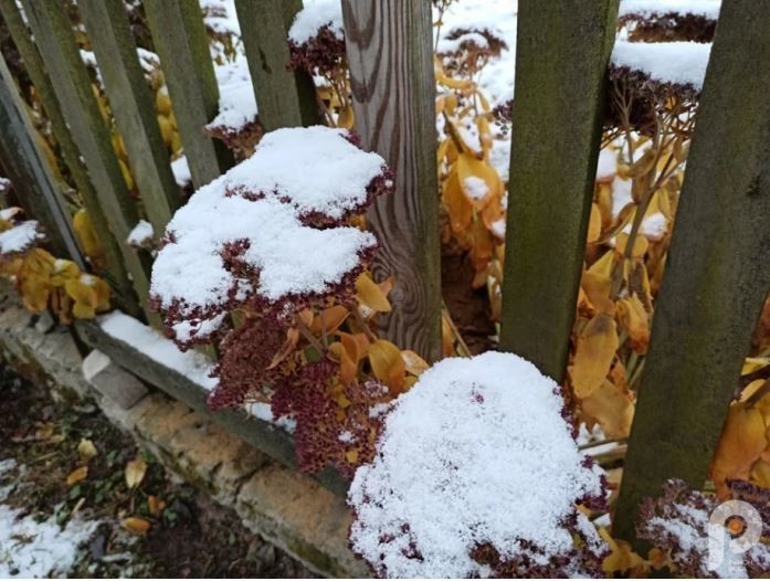 Так в Ровенской области снег начал падать в ночь на 23 ноября и потряс еще зеленые растения и цветки.