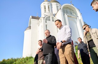 Костин и Варадкар также посетили храм Андрея Первозванного в Буче, во дворе которого российские оккупанты закапывали убитых ими жителей города в марте 2022 года. Внутри здания генпрокурор также показал инсталляцию с фотографиями жертв оккупантов.