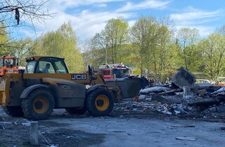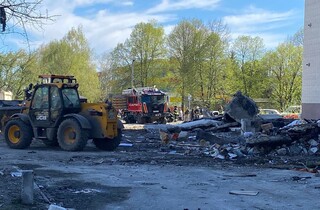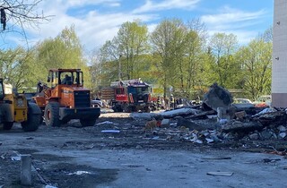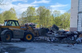 Спасательная операция в Умани завершена, со двора многоэтажки, в которую попала ракета, вывозят строительный мусор. Об этом сообщает корреспондент «Главкома».