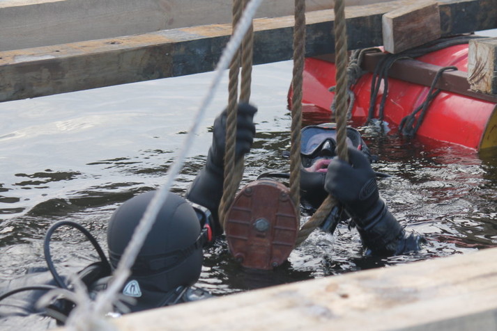 «Благодаря тому, что лафет большей частью находился в иле, хорошо сохранились всевозможные металлические и деревянные элементы, которые мы будем детально изучать после подъема. А кое-где – даже краска. Поэтому мы можем уверенно сказать, что этот лафет был красного цвета», – рассказал известный археолог.