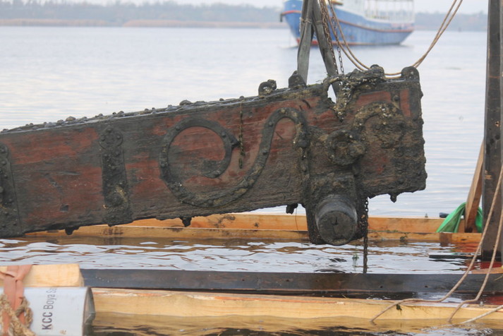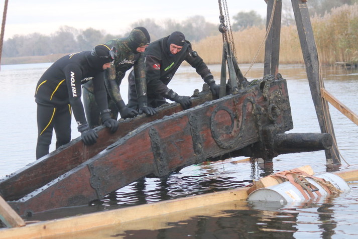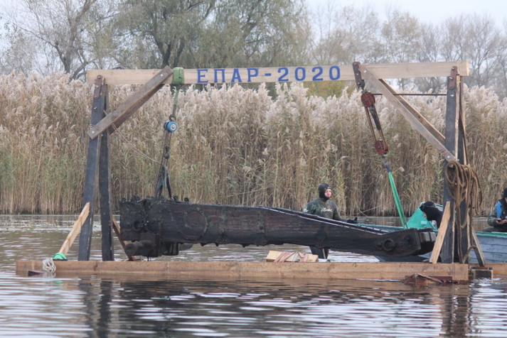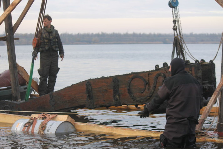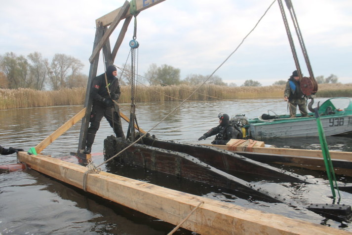 Под Запорожьем команда гидроархеологов во главе с руководителем отдела реставрации Национального заповедника «Хортица» Валерием Нефедовым на дне русла Днепра в районе села Каневское нашли уникальный артефакт казацкого периода: пушечный лафет. В понедельник 23 ноября его подняли со дна реки.