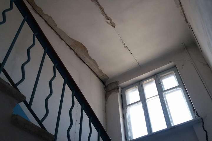 В Запорожье четырехэтажный жилой дом на бульваре Шевченко, 42, в последние дни просел на несколько сантиметров – на стенах образовались огромные трещины, с потолка пластами отпадает штукатурка.