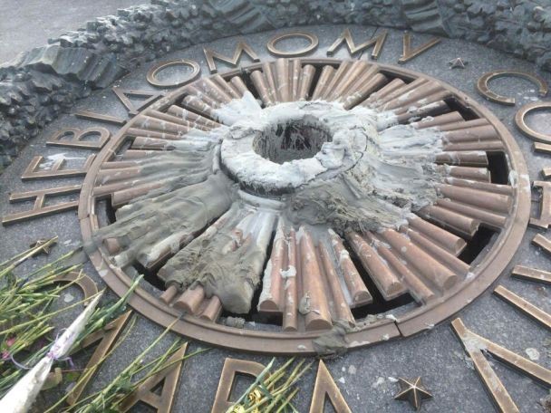 В парке Вечной Славы в Киеве злоумышленники в очередной раз залили бетоном Вечный огонь.