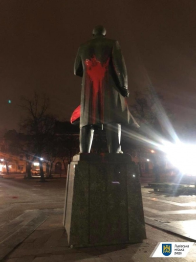 Под покровом ночи 5 февраля вандалы повредили памятник Степану Бандере, на площади Кропивницкого во Львове. Памятник облили красной краской.