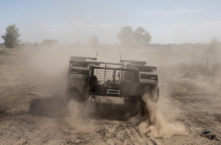 Украинские военные проводят испытания бронетранспортеров на полигоне возле Киева