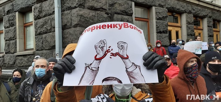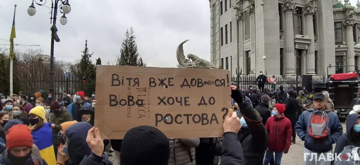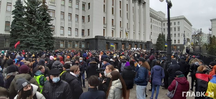 В субботу, 27 февраля, в здания Офиса президента в Киеве проходит акция протеста против приговора политическому активисту Сергею Стерненку. У здания собралось более четырех тысяч человек, и участники продолжают прибывать, сообщает корреспондент Главкому.