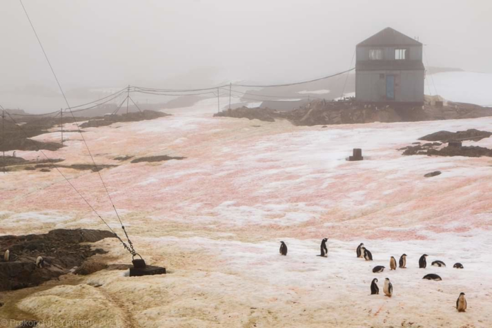 Возле станции «Академик Вернадский» снег стал малиновым и зеленым (фото)