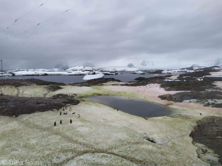 За цветным снегом возле станции можно наблюдать в конце антарктического лета. Такая окраска появляется через развитие в снегу микроскопических водорослей, которые размножаются спорами, не боятся экстремальных температур, поэтому сохраняются в снегу в течение всей зимы. Когда погодные условия становятся благоприятными, споры начинают прорастать.