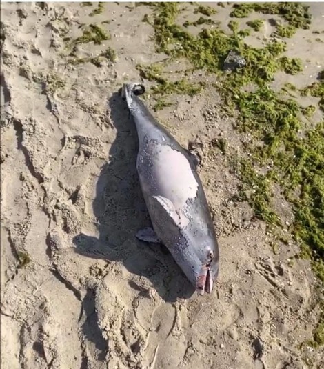 Неподалеку от затонувшего танкера «Делфи» на городской пляж Одессы выбросило погибшего дельфина. О гибели животного сообщила Госэкоинспекция.