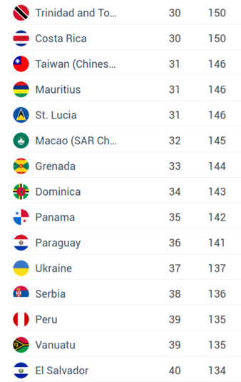 Возглавляет рейтинг Япония, ее граждане могут посетить 193 страны. На втором месте – Сингапур с безвизовым доступом в 192 страны. Третье место делят Южная Корея и Германия, чьи граждане могут посетить с безвизовым доступом 191 страну.