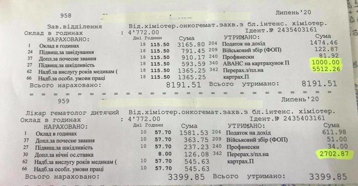 «Впервые за много лет большинство лучших педиатров, неонатологов, хирургов, кандидаты и доктора наук, медсестры ушли в отпуск без отпускных выплат. Врачи и медсестры онкогематологии при всех доплатах за сопровождение интенсивных химиотерапий на руки получили 4,7- 8 тыс грн!», – сказано в сообщении.