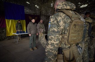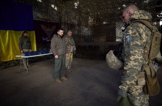«Имею честь сегодня быть с вами здесь, на Донбассе. Позвольте поздравить вас с вашим праздником и праздником всего нашего государства – с Днем Вооруженных Сил Украины. Желаю вам сил, чтобы героически защищать наше государство, как вы это делаете», – отметил Зеленский.