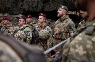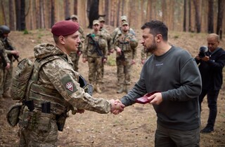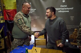 «Имею честь быть сегодня здесь, поблагодарить вас и ваших собратьев за защиту нашего государства, за каждый день и ночь, что вы отдаете за всех нас, не жалея себя. Это очень важная миссия. Я желаю всем вам только победы, здоровья, возвращаться в живых, не терять мотивации, с которой вы так крепко защищаете суверенитет нашего государства и будущее наших поколений», – сказал Владимир Зеленский.