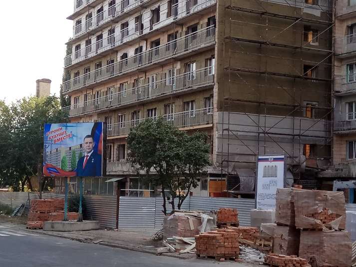 Также на его фото попали билборды с надписью «С Днем освобождения Донбасса!», который был 6 сентября прошлого года.