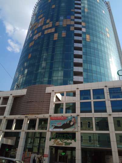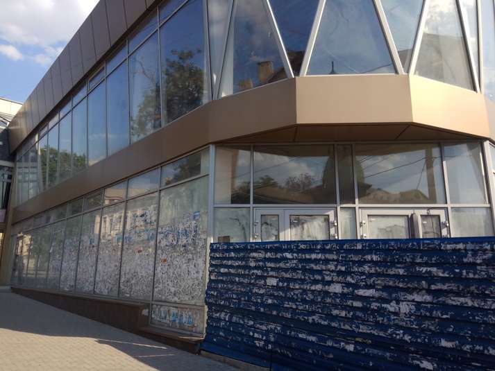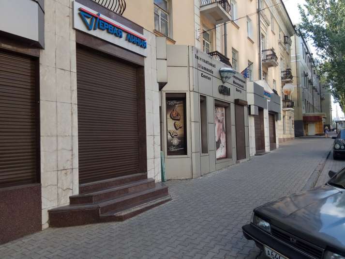 «Торговый центр «Золотое Кольцо». На деле это обшарпанное здание, никто не моет стены, не ухаживает особо, просто сдают торговые площади. Ломбард. Это самый центр города», - комментирует житель Донецка.