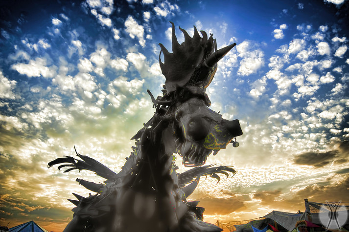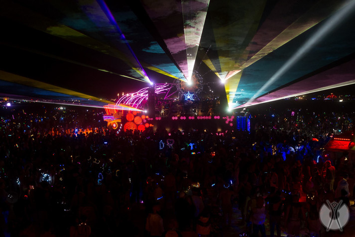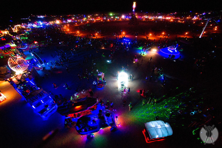 Она просто огромна, это несколько километров в длину на несколько километров в ширину, в которой полумесяцем расположены тысячи лагерей, трейлеров, фургонов, танцполов и настоящих инсталляций.