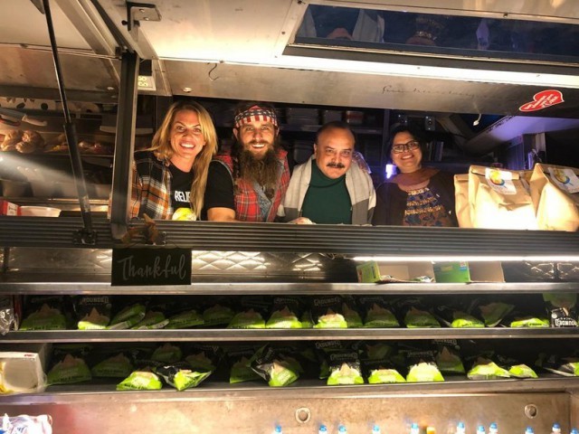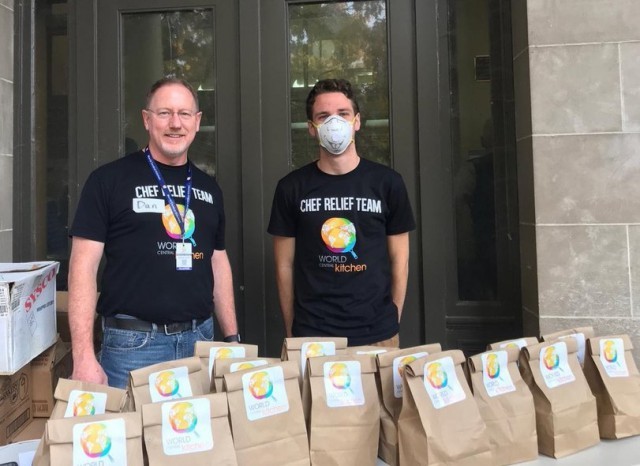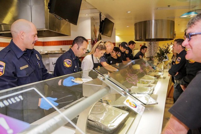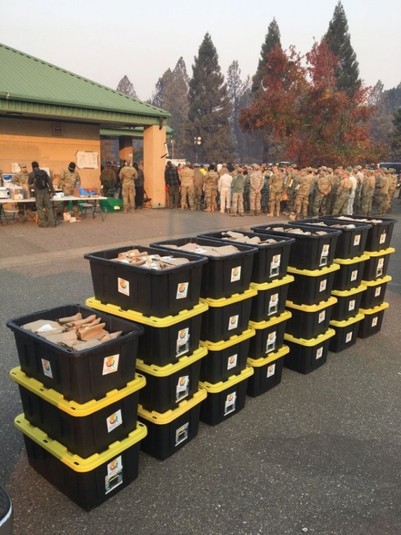 Для того, чтобы помочь пострадавшим от лесных пожаров и тем, кто борется с этими пожарами, жители Калифорнии помогают в приготовлении пищи.