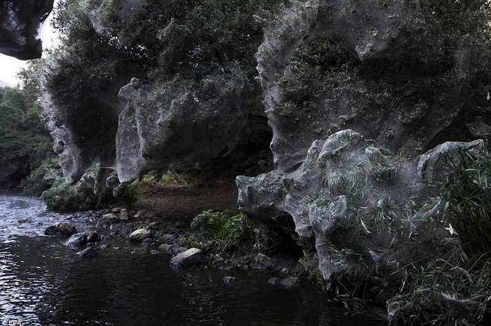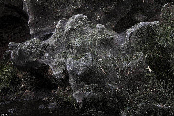 Паутиной покрыта трава, кустарники и даже большие деревья. По информации издания, в некоторых местах толщина паутины достигает толщины пожарного шланга, и была настолько тяжелой, что ломала фонари.
