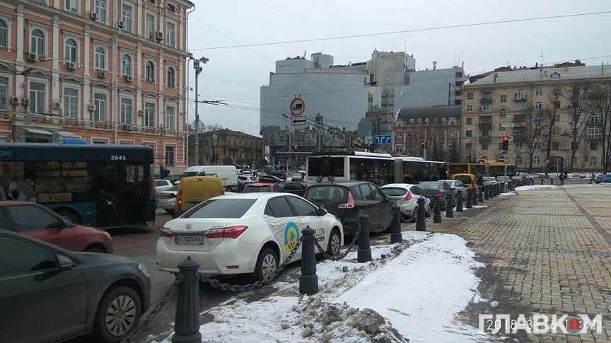 В центре Киева утром в пятницу, 16 марта, из-за героя парковки парализовано движение транспорта.