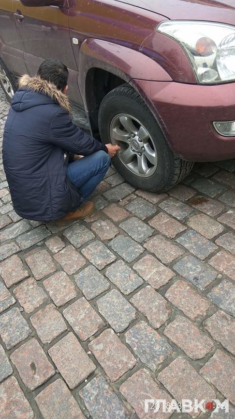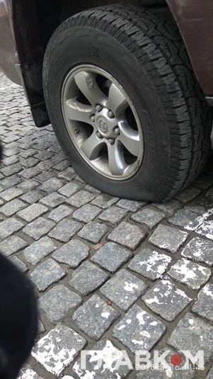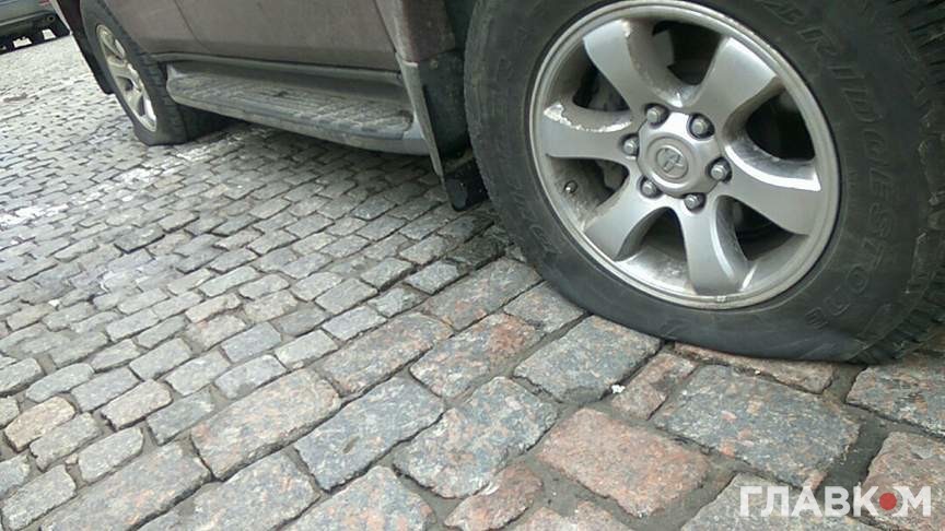 Возмущенные люди пробили одно из колес на автомобиле нарушителя
