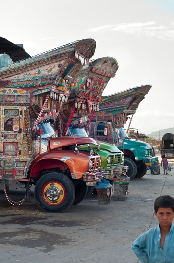 Цепи на бамперах, корона и росписи на кузове и прицепе - так выглядят грузовики в Пакистане, Афганистане и Индии.