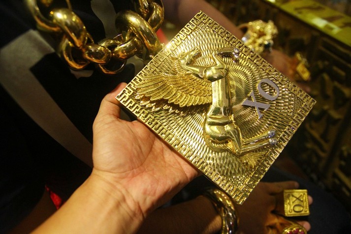 36-летний вьетнамский бизнесмен, Тран Нгок Фук, попал в заголовки местных газет, когда на YouTube появились видео, где он демонстрирует свои огромные золотые украшения. Как рассказал журналистам Фук, он начал заказывать гигантские драгоценности 5 лет назад, после того как консультант по фэн-шуй сказал ему, что они привлекут удачу. Поэтому бизнесмен постоянно таскает на себе 13 кг золота — цепочки, медальон, браслеты, кольца и пояс.