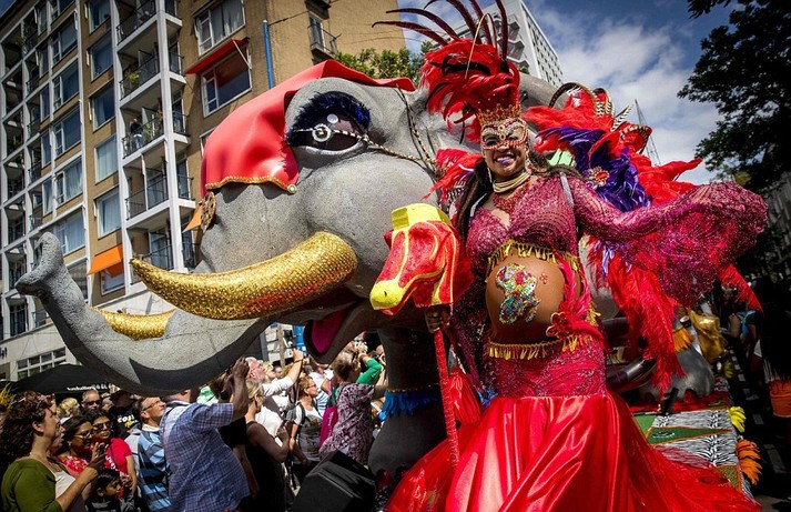 Более 2500 танцоров на 30 платформах развлекали зрителей во время шествия, завершающего фестиваль Rotterdam Unlimited. Одетые в яркие костюмы и огромные головные уборы танцоры и барабанщики превратили Роттердам в одну массивную уличную вечеринку.