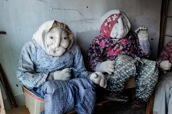 Уехавшие жители из деревни Нагоро оставляют кукол на память о себе или умерших родственниках
