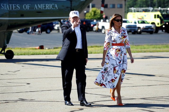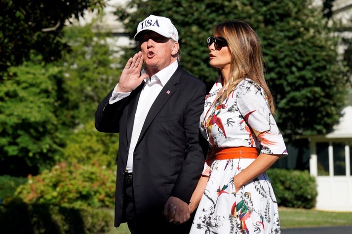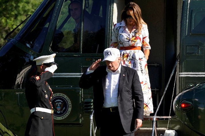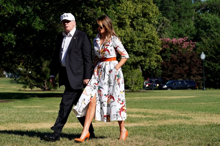 Мелания Трамп вернулась в Белый дом после выходных, проведенных в Нью-Джерси. Первая леди США прогуливалась за руку с мужем Дональдом Трампом.