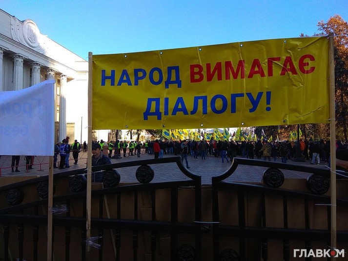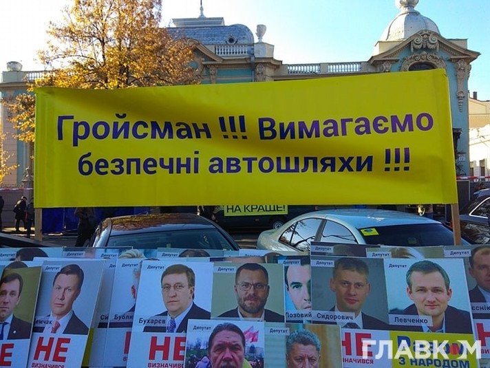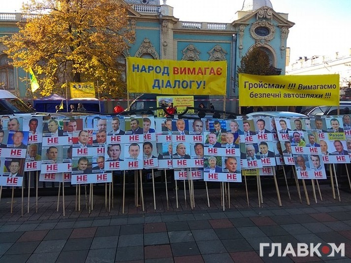 Акция проходит у здания Верховной Рады и Кабинета министров. Проезжая часть улицы Грушевского здесь перекрыта частично, участники акции оставили полосы для движения.