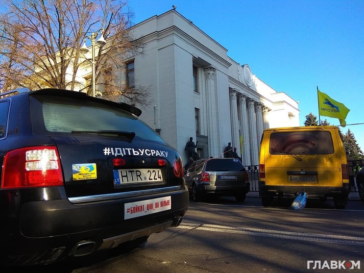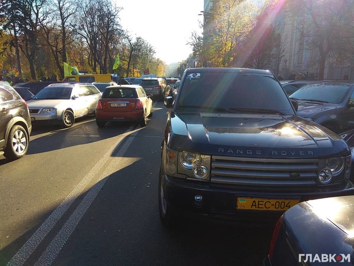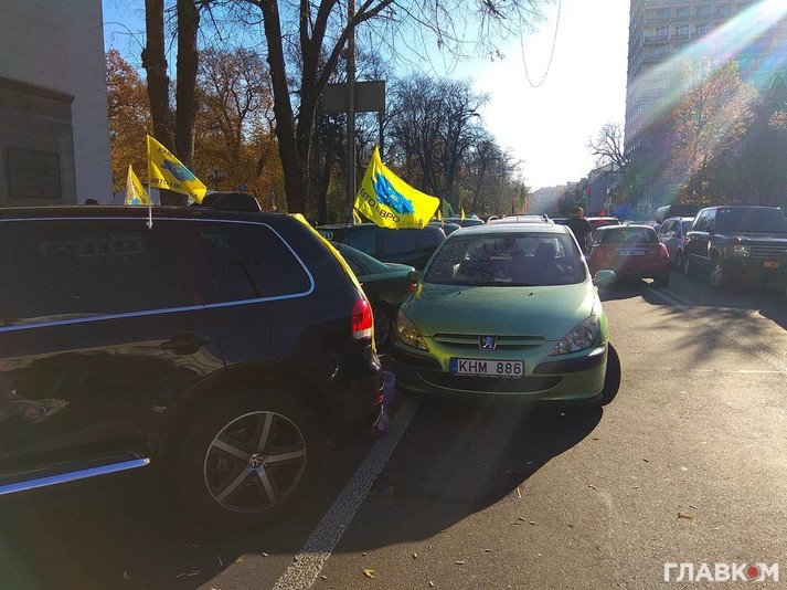 Владельцы автомобилей на европейских номерах частично перекрыли улицы в центре Киева.