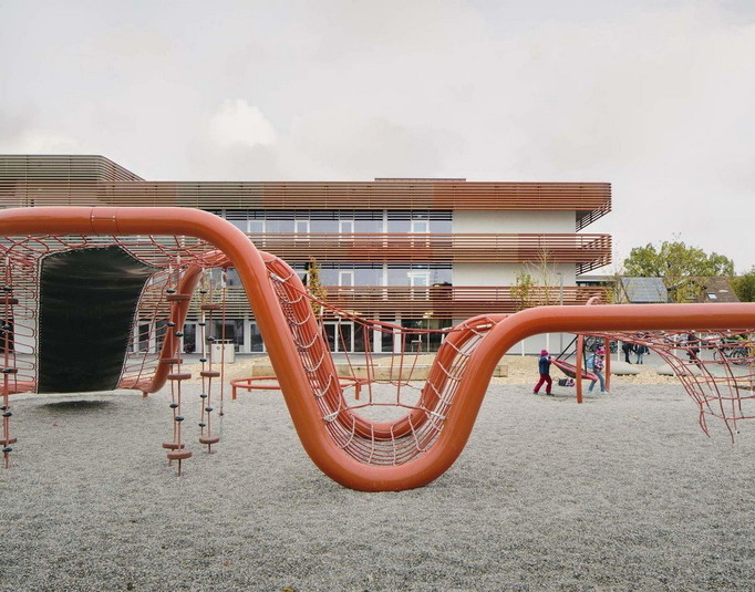 Большое количество значительных открытых пространств не только отвечает современным педагогическим подходам, но и делает постройку доступной и привлекательной для всего местного сообщества.