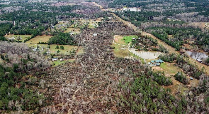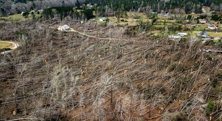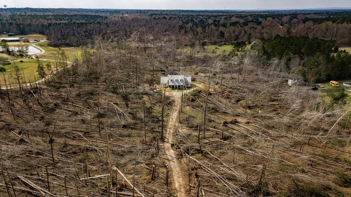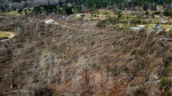 3 марта разрушительные торнадо пронеслись по американским штатам Алабама и Джорджия. Они разрушили множество домов и унесли жизни 23 человек. Фотограф Мэтт Гиллеспи (Matt Gillespie) Отправился в Эллерси, штат Джорджия, чтобы снять масштабы разрушений с воздуха.